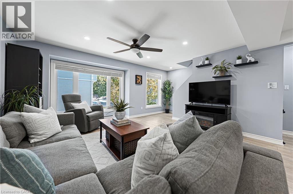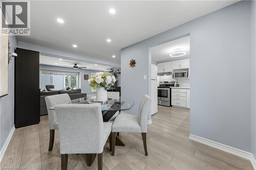 Stylish and spacious 3-storey townhome condo backing onto greenspace! With two incredibly generous bedrooms, modern updates, and a functional layout, this home is ideal for anyone looking for comfort and convenience out of the big city setting. Enter into the foyer on main floor which offers convenient under stair coat closet, a versatile den, perfect for working from home, renovated 2-piece bathroom (2025), laundry area, single car garage access, and direct walk-out to your newer deck (2023) with serene view backing onto Green space. On the second floor, enjoy a bright kitchen with newer countertops and backsplash (2023), and the open-concept living and dining areas with smooth ceilings and pot-lighting that brightens the entertaining area. Upstairs, you’ll find two exceptionally spacious bedrooms; featuring a wall-to-wall closet and the other with a walk-in closet, a fully renovated 4-piece bathroom (2023) featuring a new tub, and vanity with medicine cabinet mirror. Additional thoughtful updates include new lighting, storage solutions, and custom retractable blinds that add a polished touch throughout the majority of the home. Location highlights include quick access to the University of Guelph, local trails, and the nearby conservation area for hiking and canoeing. Daily essentials are minutes away with grocery stores and restaurants in walking distance, while weekend escapes are easy with Downtown Guelph, and 401 access just 15 minutes away and destinations like Elora Mill Spa within half an hour. This home combines thoughtful upgrades, a functional layout, and a fantastic location — ready for its next owner to enjoy. (id:4069)
